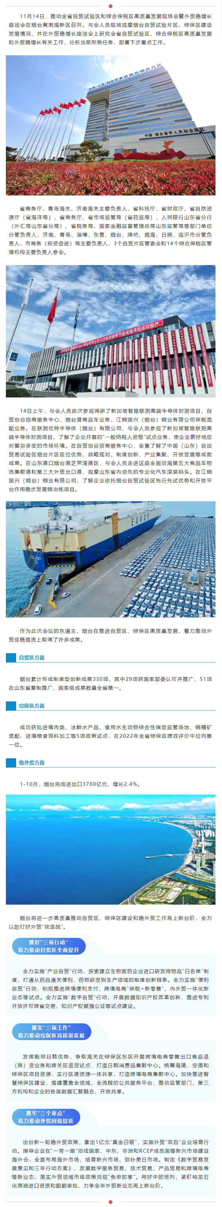 全力以赴打好外貿攻堅戰丨全省自貿試驗區和綜合保稅區高質量發展現場會暨外貿穩增長座談會在煙臺黃渤海新區召開